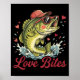 Love Retro Bites Fishing Fisherman Valentines Day Poster