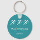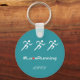 Enter initials or a name or other text in the box, to create the perfect stocking filler gift for anyone who enjoys running. This round button key ring has the pictogram of three runners, in white on a smart blue background (or click the Customise It button to choose a different colour).