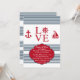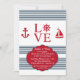 A spirited, nautical invitation for lovers and sailors. The white background features blue stripes and red nautical motifs. The word love has a helm in the place of the letter "o". (FP)