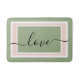 Love is written in black script. Sage green background with pastel blush pink and white geometric block pattern. Original Designs by TamiraZDesigns.