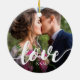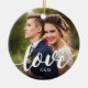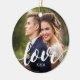 Create a sweet keepsake of your wedding, honeymoon or special moment with this beautiful custom ornament. Add a favourite wedding photo to each side with "love" overlaid in white handwritten style modern calligraphy lettering, and your initials beneath.