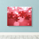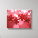4 red puzzle pieces with the lettering "LOVE" on a bokeh background.