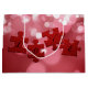4 red puzzle pieces with the lettering "LOVE" on a bokeh background.