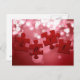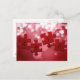 4 red puzzle pieces with the lettering "LOVE" on a bokeh background.