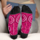 These funky, magenta socks have a 1970’s inspired design, with a message of love, that reads, “All you need is love”. The top portion has a white band that also reads “All you need is love”.