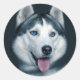 Aww...Who can you resist the cute face of a Husky puppy dog? These fun canine stickers features an  image of an beautiful blue eye Siberian Husky dog highlighted by a dark grey background. This sweet pup is ready to help you send smiles to family and friends.