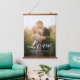 Custom hanging tapestry featuring a simple and modern design with the word "Love" in an elegant script along with your names and wedding date over your favourite photo. This cute tapestry makes a great gift for a newlywed couple for their first anniversary or newly engaged couple.