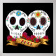 Happy little Day of the Dead skulls surrounded by tattoo style roses. Banner reads "Amor". This poster is customisable-you can resize the graphic, change the background colour or add text!