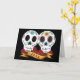 Happy little Day of the Dead skulls surrounded by tattoo style roses. Banner reads "Amor". This card is customisable-you can change the background colour and add text inside and out!