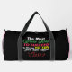 This black duffle bag features a whimsical, multi-coloured text design stating "I Love SLEEPING BECAUSE Dreams ARE BETTER THAN REALITY." This playful message resonates with dreamers and those who enjoy the comfort and escape that sleep provides.