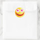 Cute cartoon illustration of a yellow happy smiling face with heart shaped eyes. Maybe he/she is in love. Image available on various gifts and products.