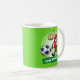 Enjoy a tea or coffee while watching the match with this funny mug, featuring a cute gecko soccer player kicking a soccer ball. Use "Personalise this template" to tweak the "LOVE SOCCER" text and create a unique, customised gift. Text changes are reflected on both sides.