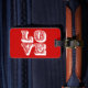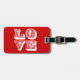 LOVE square luggage tag. Background colour, text and image placement can be customised.