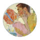 Artist:Bernard D'Andrea | Red-haired lady kissing man behind sunflowers with a blue chair and a cat.