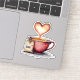 Steam rises out of a tea cup making a heart shape. A tea bag with "Love" typed on it rests beside the cup. This cute design is perfect for tea lovers on Valentine's Day.