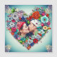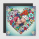 Pretty teal background with red roses and colourful flowers whimsical folk art style floral heart. Add a picture of you and your partner in the personalise area. Sweet romantic gift for Valentine's Day, Christmas, a birthday, anniversary or any romantic occasion.