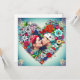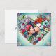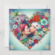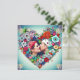 Pretty teal background with red roses and colourful flowers whimsical folk art style floral heart. Add a picture of you and your partner in the personalise area. Sweet romantic gift for Valentine's Day, Christmas, a birthday, anniversary or any romantic occasion.