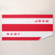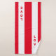 Elegant vertical text on red and white striped Towel Set. Text can be personalised.