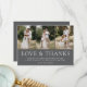 Share your gratitude with our Love and Thanks 3-Photo Wedding Thank You Card. This design features space for three of your favourite wedding photos, beautifully arranged alongside elegant "Love & Thanks" typography. Personalise it further with a heartfelt thank-you message to make it a unique keepsake for your guests.