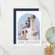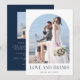 Elegant arch photo wedding thank you cards in a "Love and thanks" design - in navy blue and white. Customise front with photo and your names and add a personal message to the back, along with a second favourite wedding day photo.