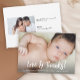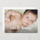 Personalise these Baby shower thank you cards with 2 of your beautiful photos of your baby and family (one on the front and another on the back). Thank your family and friends who have showered you with their love and introduce your new baby with images they can cherish for many years as baby grows. Customise the name, pictures, birth date, baby weight and length, message and sign off on these flat cards. Modern and stylish "Love & thanks" handlettering type script.