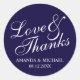 'Love & Thanks' Navy & White Wedding Favour Classic Round Sticker