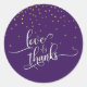 Love & Thanks Script Gold Confetti and Dark Purple Classic Round Sticker