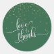 Love & Thanks Script, Gold Confetti and Leaf Green Classic Round Sticker