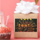 The artwork features a centred and balanced layout that draws the viewer's eye to the central motif, combining text and imagery for a striking effect. The dark background enhances the vibrancy of the colours, making the design pop.