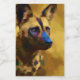 A digital painting that merges hyper-realism with bold, contemporary abstraction. This captivating portrait of a African Wild Dog showcases a harmonious clash of vibrant hues deep blues, golden ochres, and electric greens that breathe life into every fur strand and shadow. The textured, almost cubist brushstrokes add depth and movement, transforming a simple canine profile into a statement of raw beauty and emotional intensity.