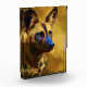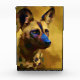 A digital painting that merges hyper-realism with bold, contemporary abstraction. This captivating portrait of a African Wild Dog showcases a harmonious clash of vibrant hues deep blues, golden ochres, and electric greens that breathe life into every fur strand and shadow. The textured, almost cubist brushstrokes add depth and movement, transforming a simple canine profile into a statement of raw beauty and emotional intensity.