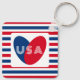 Love the USA Patriotic Red White Blue Fun Heart Ke Key Ring