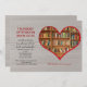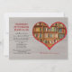 This grey, woodgrain, background invitation holds a big red open heart with an image of shelves full of books. Perfect for your book club events.