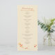 A wonderfully romantic and sweet wedding program with a tree which leaves are in the shape of hearts in yellow, red and orange and a few of those leaves being swept away by a mild breeze. Lovely for an autumn wedding!