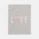 Snuggle up in this beautiful fleece blanket that has large letters that spell LOVE with the "O" filled with a decorative pink heart button that even has a faux stitch! Off-white letters on a light grey background. Perfect and unique home decor accent for the farmhouse to boho style home by Farmhouse Living.