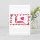 This invitation showcases the word “Love” in a unique print font with red letters pink outline inside of a rectangular styled design with red and pink themed hearts, roses and strawberry style heart on two corners in this Valentines Day theme. Printed on a classic, all around paper 17.5 pt thickness with an uncoated matte finish with an eggshell texture made and printed in the USA with "Love" printed on the back.