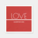 Paper Napkin with a red and white with a minimal design for Valentine's Day. All of the text can be customised.