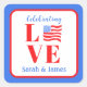 LOVE Watercolor American Flag NAME Bridal Square Sticker