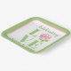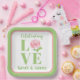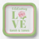 LOVE Watercolor Rose NAME Bridal Green Pink Paper Plate