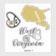 A sheet of 3 different sticker designs, featuring West Virginia map and state flag.