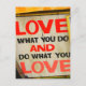 Beautiful motivational and inspirational sign to find what you love in life and never settle for less.