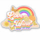 Retro style colourful "Love wins" text design with rainbow, sun, butterflies, flowers, clouds decoration on grunge background