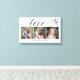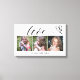 Cute simple modern and stylish custom wall art canvas print . This design features a photo collage of three 3 photos with a simple and minimal black Love typography design and black heart script. This will be a perfect as personalised gift