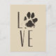 A postcard with a cute illustration of a sketched dog paw print in brown with a grunge style. The letters spell out the word "Love" with the paw print in place of the letter "o". Awesome for pet lovers.