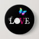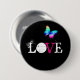 Love ...simple black button with the word Love in bold with script desoration. Orginal art ainbow butterfly. WHatever LOVE means to you, enjoy ths artsy fashion statement.