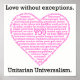 A square poster of Love Without Exceptions. Unitarian Universalism. Best at 12 x 12.