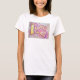 Watercolor painting of the golden yellow word "Love" with a double heart. Pink and purple highlights the letters and heart. A light splash of glitter across the top gives the painting a sparkly glow. Make a custom Love Word art painting t-shirt with your own love message and photos for special love shirt gifts!