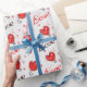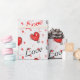 Elegant love valentines day wrapping paper with love text and painted red hearts. colourful pattern to wrap your romantic gift for her / him