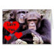 Two chimpanzees with red hearts that has sayings Love you in the centre.