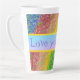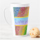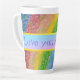 This mug would make a lovely gift for someone you love a latte! Fill it with a bag of their favourite candies or a sweet little bouquet of flowers. Birthday, anniversary, Mothers Day and more. Or you can personalise this mug with a name or another message. An impressionistic rainbow and an array of hearts make this mug a modern work of art for anyone you know!